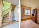 Wat een geweldige uitstraling heeft deze jaren ‘30 woning! Open de voordeur naar de lange hal, met paneeldeuren en de originele trapopgang. De tegelvloer in blokmotief past goed in de hal, en aan de linkerzijde is de toiletruimte.