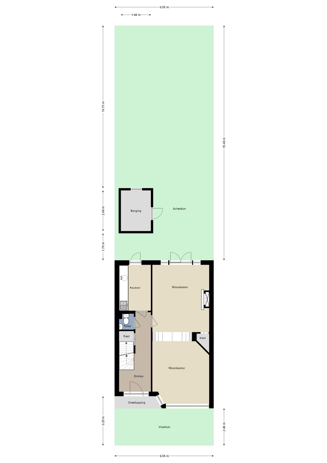 Vanuit de woonkamer en keuken is de achtertuin te bereiken, met een gunstige ligging (west) voor de zonliefhebber. Hier kun je het grootste deel van de dag in de zon zitten, omringd door groen en met veel privacy. In de stenen berging is ruimte voor de fietsen en er is een poort naar de steeg.