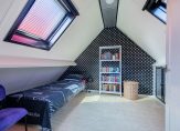 Met een nokhoogte van ruim 2.50 meter is de tweede verdieping een volwaardige etage. Op de overloop, bij de HR-ketel, is de opstelling van de wasapparatuur. Aansluitend is de vierde slaapkamer, met twee dakramen en bergruimte in de schuinte van het dak. Bergruimte is er ook achter de louvredeuren, waardoor er genoeg plek is voor de koffers en andere spullen.