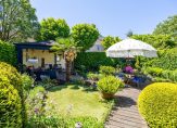 Hier wonen tuinliefhebbers, dat kun je zien aan de mooi aangelegde voor- en achtertuin. Groene hagen, mooie struiken en overige beplanting vormen een fraai geheel en in de achtertuin is een grote vijver gemaakt, die vanaf de verschillende terrassen en vanuit de woning te bewonderen is.