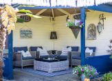 Aan het einde van de oprit is de overdekte entree, die toegang geeft tot de lichte hal van deze verrassende woning. De tegelvloer past goed bij de binnendeuren en aan de linkerzijde is de toiletruimte met fonteintje. Ook is er een handige bergkast in de hal, net voordat je de woonkamer in loopt.