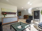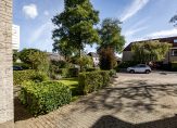 De diepe voortuin met veel groen en de mooie architectuur van het huis trekken direct de aandacht. Op eigen terrein parkeren is geen probleem, want op de oprit kunnen meerdere auto’s staan. Vervolgens loop je naar de voordeur, aan het einde van de oprit.