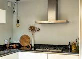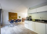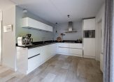 Het eetgedeelte, groot genoeg voor een 6-persoonstafel, grenst aan de in 2017 vernieuwde keuken. De lichte, moderne hoekopstelling heeft een zwart composiet aanrechtblad en alle benodigde apparatuur is ingebouwd: een 5-pits gaskookplaat, afzuigkap, vaatwasser, koelkast en een combi-oven.
