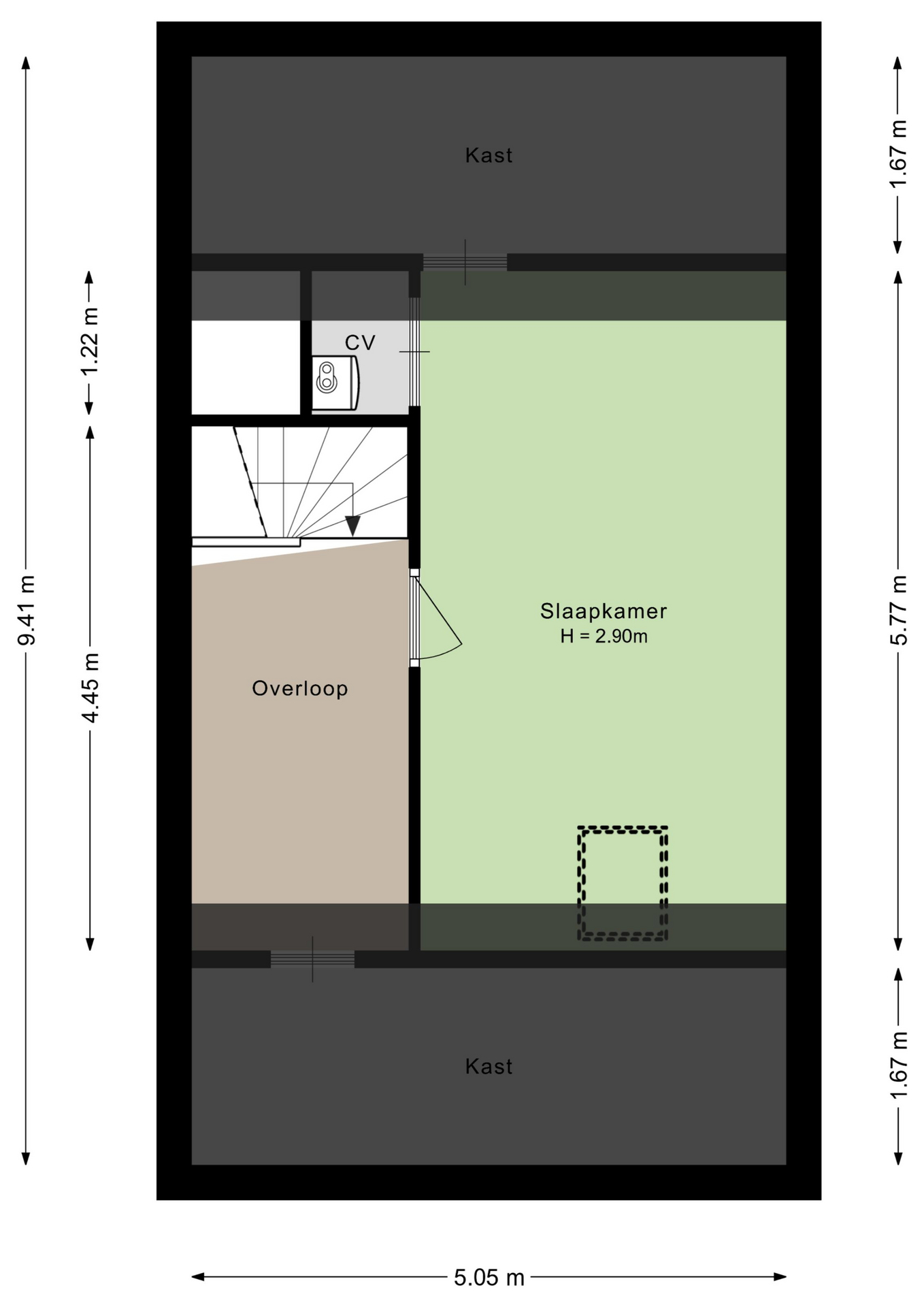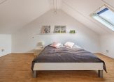 Een vaste trap geeft toegang tot de tweede verdieping, waar een overloop en een ruime slaapkamer zijn. De nokhoogte is circa 2.90 meter en in de schuinten van het dak zijn handige bergingen. Aan de voorzijde is een dakraam geplaatst en de achterzijde biedt de mogelijkheid voor een dakraam of dakkapel. Zo is het zelfs mogelijk om een vijfde slaapkamer te realiseren…