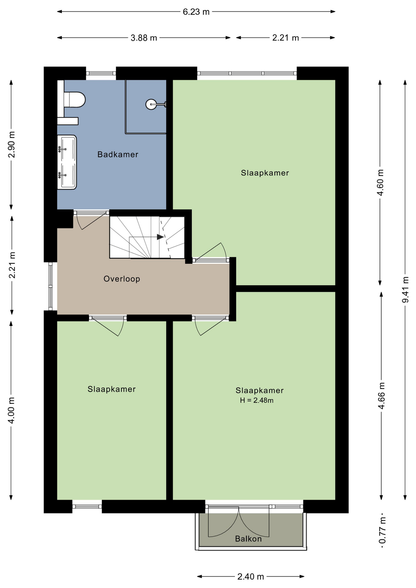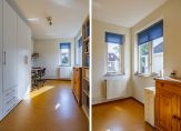 Ruimte is er niet alleen op de begane grond, maar ook op de eerste verdieping. Vanaf de overloop zijn drie slaapkamers te bereiken, waarvan twee aan de voorzijde zijn. Een van deze kamers is de master bedroom met openslaande deuren naar het balkon. Ga je zelf slapen in de ruime slaapkamer aan de achterzijde, dan word je wakker met prachtig uitzicht naar het groen.