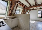prachtige hoekpand uit 1600 vind je dit superleuke appartement op de tweede, tevens bovenste verdieping. De eeuwenoude dakconstructie en houten balken bepalen de sfeer en grote ramen aan twee zijden zorgen voor veel lichtinval in het appartement. De woonkamer, keuken, slaapkamer, badkamer en toiletruimte zijn op de tweede verdieping en in de nok is een ruime zolder.