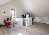 Met een nokhoogte van ruim 4.70 meter, en ramen aan twee zijden, is deze verdieping klaar voor een nieuwe invulling. Een deel van de kamer is in gebruik als thuiswerkplek en aan de andere zijde van de trap, bij de verwarmingsinstallatie, is de opstelling van de wasmachine. Het is mogelijk om twee slaapkamers, een wasruimte en een bergzolder te realiseren.