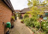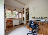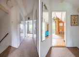 In de woonkamer, bij het zitgedeelte is een schuifdeur die toegang geeft tot een tweede hal, vanaf hier zijn een slaapkamer, badkamer en de garage te bereiken. De garage, met een vliering, heeft een lengte van meer dan 6.10 meter (binnenmaat). Er zijn een deur naar het pad naast de garage, en een kantelpoort naar de oprit. De poort die toegang geeft tot de tuin is gemeenschappelijk met de buren.