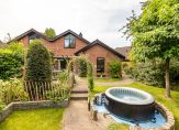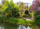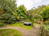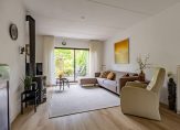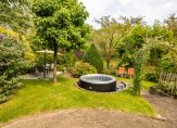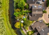 Via de schuifpui in de woonkamer, of de deur in de slaapkamer, loop je de mooi aangelegde tuin in. Bomen en hoge beplanting zorgen voor privacy, en er zijn twee terrassen met een goede zonligging. Verder zie je een ronde vijver met waterlelies, een rond terras met plek voor een jacuzzi en een breed pad in de zijtuin. Maar het allermooiste vind je aan het einde van de tuin, bij het trappetje. Een terras aan het water, met riet aan je voeten en mooie bomen aan de overzijde.