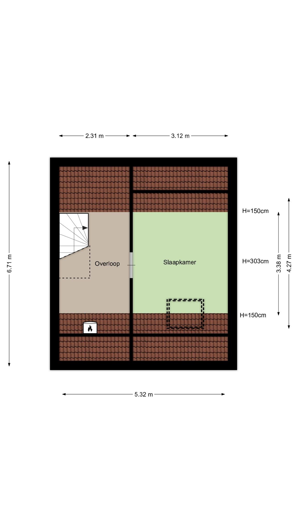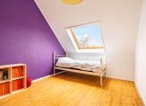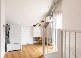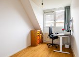 De eerste ruimte is de overloop, met de opstelling van de HR-ketel en het ventilatiesysteem. Ook is hier de aansluiting voor de wasmachine, waardoor deze niet in de badkamer of een van de slaapkamers hoeft te staan. Aansluitend is de vierde slaapkamer met een hoge nok, een groot dakraam en een berging in de schuinte van het dak.