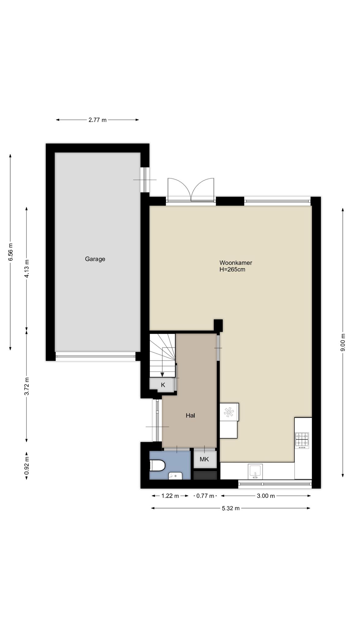 Aan de buitenzijde heb je het al gezien, deze woning heeft een ruime garage. Met een lengte van meer dan 6.50 meter is er plek voor een auto, de fiets en voor andere spullen. De garage heeft een groene kantelpoort naar de oprit, een deur naar de achtertuin en een handige bergzolder.