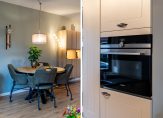 Nodig vrienden en familie maar uit voor een etentje, want deze woning heeft een goede keuken! In een mooie L-vorm, met het spoelgedeelte bij het raam en een aanrechtblad van graniet. Ook een deel van de achterwand is van graniet, wat de keuken een luxe uitstraling geeft. Alle benodigde apparatuur is ingebouwd: een inductie kookplaat, afzuigkap, vaatwasser, combi-oven en een koelkast.