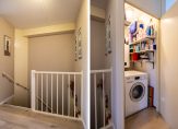 Op de overloop, naast de trap, is een ruimte waar de HR-ketel en de ventilatieunit hangen. In deze ruimte kun je ook de wasmachine en wandplanken kwijt, waardoor de ruimte optimaal benut kan worden.