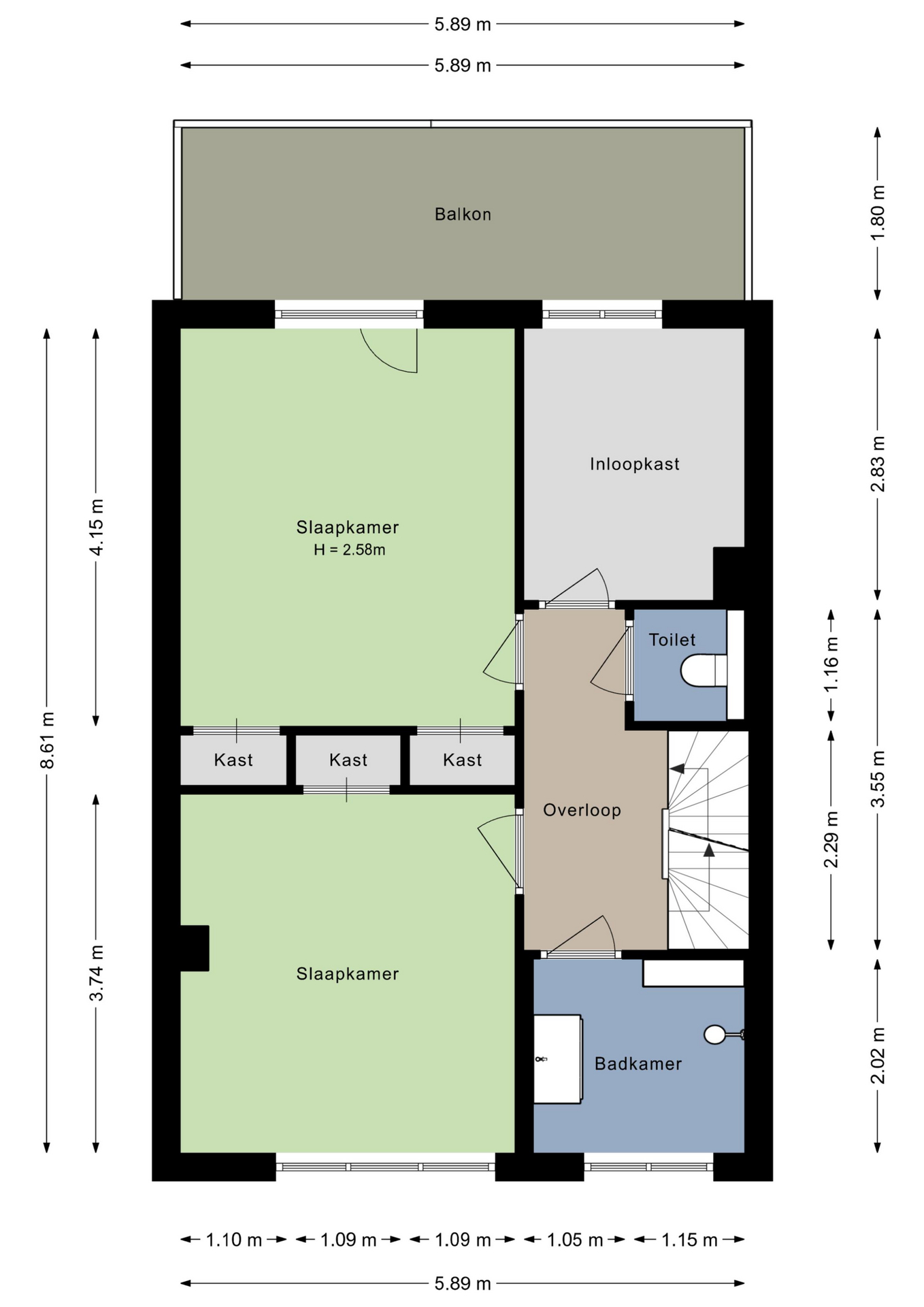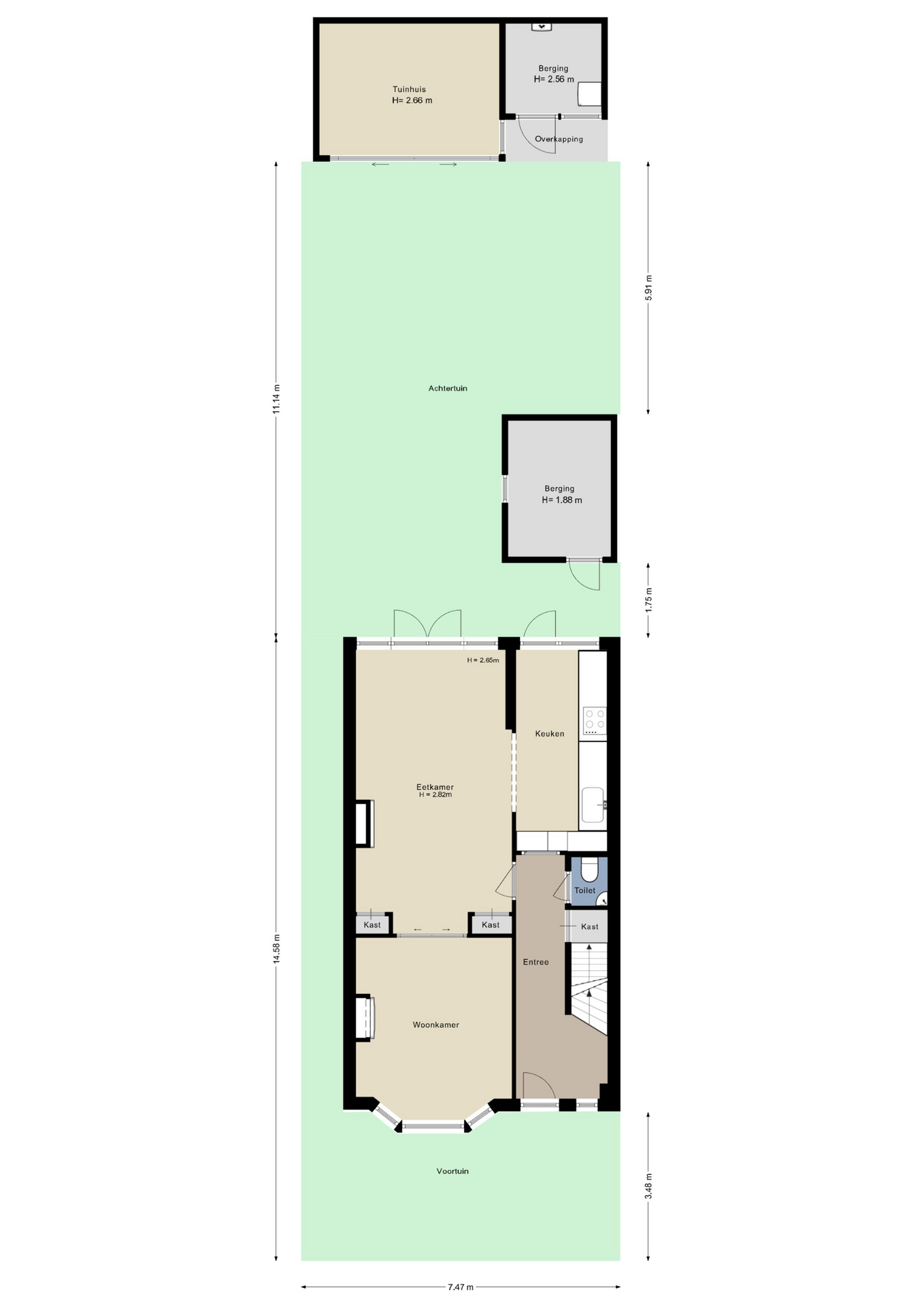 Met een breedte van bijna 6 meter en drie volwaardige verdiepingen is dit een heerlijk ruim huis. Aan de voorzijde, naast de erker, is de overdekte entree die toegang geeft tot de royale hal. Het hoge plafond, de trekbel, tegelvloer, paneeldeuren en de trap met loper vormen een fraai geheel. Aan het einde van de hal is de toiletruimte, met een wandcloset en een klassiek hoekfonteintje.