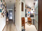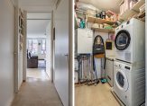 Dit goed ingedeelde appartement heeft een ruime hal, van waaruit bijna alle ruimtes te bereiken zijn. Naast de meterkast is een werk-/studeerkamer en de toiletruimte is niet alleen vanuit de hal, maar ook vanuit de badkamer te bereiken. Iets verder in de hal is de inpandige berging met de HR-ketel en de aansluitingen voor de wasapparatuur.