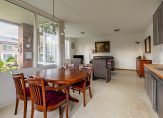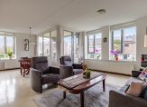 De L-vormige woonkamer met open keuken heeft lichtinval vanaf de zuid- en westkant, wat de leefruimte heel ruimtelijk maakt. Geniet niet alleen van de zon, maar ook van het uitzicht naar de gezamenlijke tuin en de rustige woonomgeving.