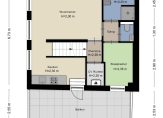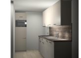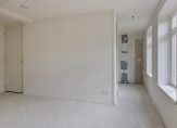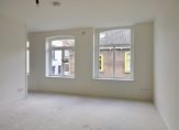 Eenmaal boven kom je binnen in de ruime woonkamer. Dit is een lichte leefruimte met diverse raampartijen. Het plafond en de muren zijn gestuct, dus na het leggen van een vloer kun je direct beginnen met inrichten. De keuken heeft een deur met raam naar het balkon, de benodigde aansluitingen voor een keuken zijn al gerealiseerd. Bij de koop van het appartement is een keuken in wandopstelling inbegrepen, inclusief inbouwapparatuur.  Via de keuken kom je op een ruim balkon van ca. 18 m2, waar je heerlijk kunt zitten!
