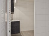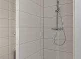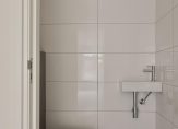 Vanuit de woonkamer is een halletje te bereiken waaraan een slaapkamer, de badkamer en separate toiletruimte grenzen. De toiletruimte is ingedeeld met een wandcloset, fonteintje en grote wand-/vloertegels. Naast de toiletruimte is de badkamer met een inloopdouche, wastafelmeubel, spiegelkast, handdoekenradiator en de aansluitingen voor de wasmachine en droger. Splinternieuw en klaar voor gebruik!
