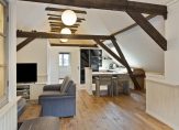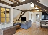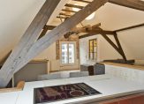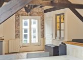 De eerste verdieping is thans ingericht als verblijfsruimte met een woonkamer, open keuken, een slaapkamers, een bergruimte en een badkamer. Fraaie elementen zijn de houten dakconstructie, houten vloer, het zichtbare metselwerk en de oude hijsinstallatie.