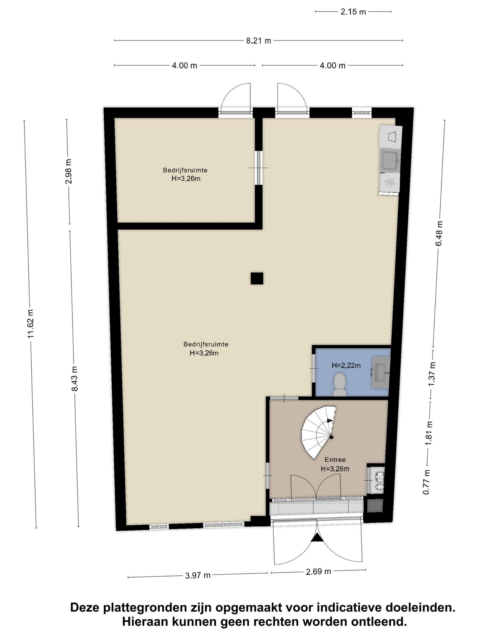 – Multifunctionele werk/bedrijfsruimte op de begane grond;