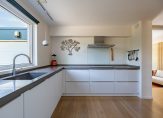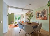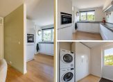Het eetgedeelte grenst aan de keuken, die in 2015 is vernieuwd. Er ligt, net als in de woonkamer, parket op de vloer en het raam bij het spoelgedeelte biedt een mooi uitzicht naar de zijtuin. De royale hoekopstelling heeft een stijlvol, grijs aanrechtblad en de inductie kookplaat, afzuigkap en vaatwasser zijn ingebouwd. In een hoge kast vind je de combi-oven, koelkast en vriezer. Naast de keuken is de bijkeuken, met de opstelling van de wasapparatuur en een handige kast onder de trap.