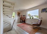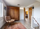Wat je zeker niet verwacht, is de zeer ruime overloop. Nu staan er twee kasten en een fauteuil, maar een indeling als thuiswerkplek of studeerruimte is goed mogelijk. Erg fijn zijn de ramen aan twee zijden, waardoor veel licht naar binnen valt.