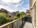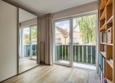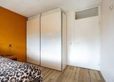 Aan de achterzijde zijn twee ruime slaapkamers, beiden met toegang tot het bijna 6 meter brede balkon. De derde slaapkamer, aan de voorzijde, heeft toegang tot het balkon boven de entree. Op bijna de hele verdieping ligt laminaat en de afwerking is, net als beneden, heel goed.